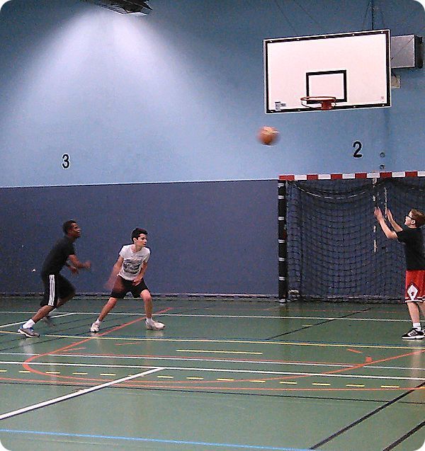 - Match de 3 min de basket (ou hand), entre les élèves, dans le gymnase (ou sur la cour).