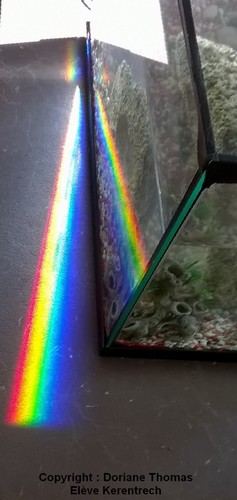 - Prise de notes : les gouttes de pluie séparent (décomposent) les lumières du soleil, on observe l'arc en ciel