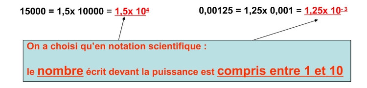 - Chercher en individuel et noter dans votre cours la notation scientifique pour les 2 exemples. Le prof fait du repérage de 2 ou 3 élèves ressources