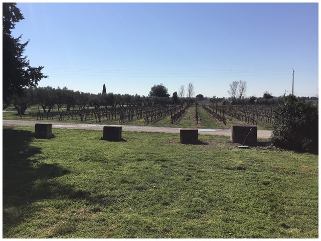 Encore une belle journée qui s’annonce. Après un départ un peu plus tardif : 9 H, en route vers le mas des Tourelles et ses vignes.