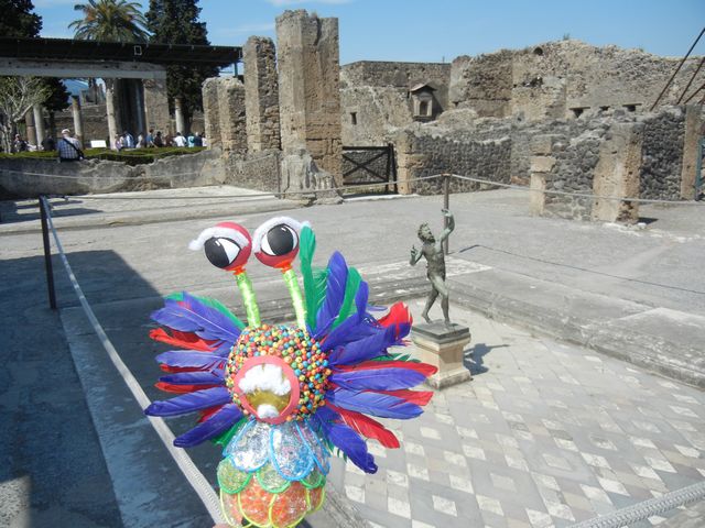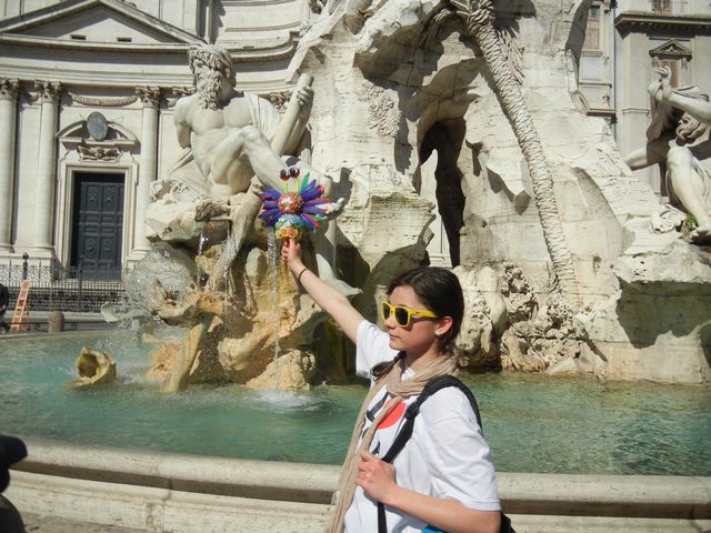 Raoni a été photographié tel le nain de jardin dans le film « Amélie Poulain » : à la fontaine de la place Navonne, au pied des escaliers de la place d’Espagne, à la villa du faune et sur le forum à Pompéi, au bord du cratère du Vésuve ce matin.