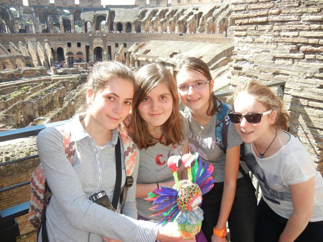 découvrir les plafonds de la chapelle Sixtine. Notre mascotte a beaucoup de succés auprès des touristes, il a même reçu un « like » sur sa page Facebook grâce à une romaine qui a adoré notre idée. Nous profiterons des vacances pour diffuser d’autres photos soit sur l’espace pédagogique du collège de Ploemeur soit en donnant un lien sécurisé pour les familles sur Google car le poids des photos risque d’être trop lourd sur Moodle, même en compressant. Alors soyez patient et sans doute ce week-end vous verrez les dernières poses de notre mascotte qui a adoré son voyage en Italie !