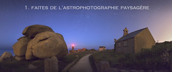 Cette photo a l'air bizarre... l'avant-plan est éclairé uniformément et le ciel sombre. Cela provient du fait que cette photo a été réalisée au pied du phare du Créac'h (sur l'Île d'Ouessant). Son puissant faisceau illumine le paysage et l'écume des vagues qui viennent se briser sur les dangeureux rochers alentours.
