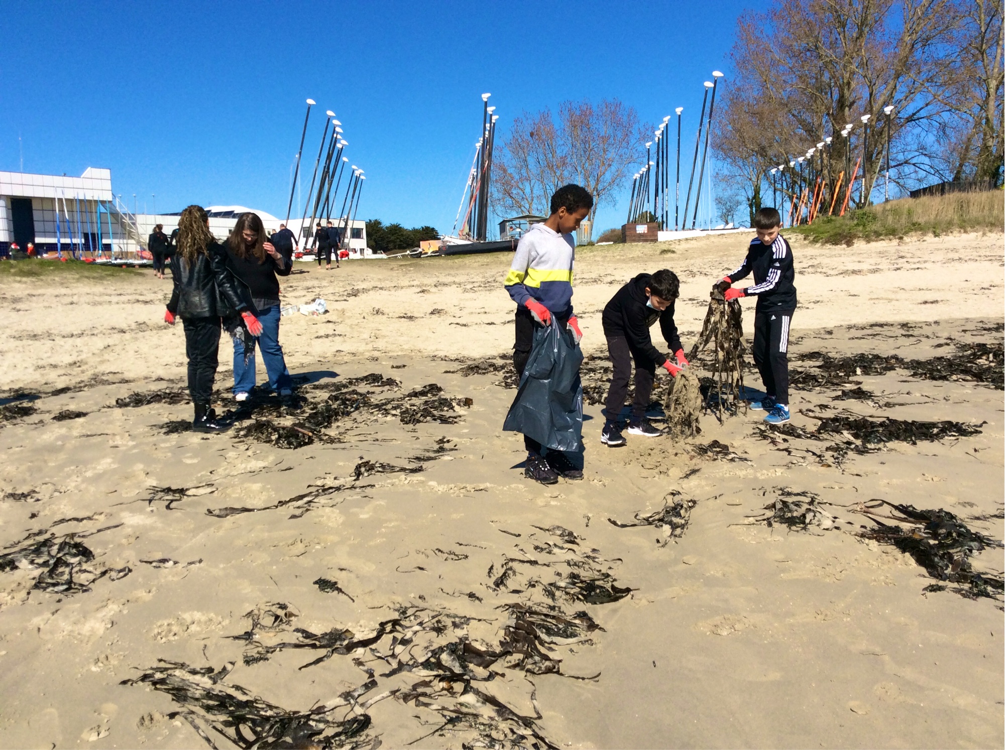 Les élèves de 6B sous un beau soleil breton , se sont rendus à la plage de Kerguelen afin de prélever des déchets en particuliers mésoplastiques (5 mm <plastique <25 mm) et microplastiques (<5 mm). Ces prélèvements seront envoyés très rapidement aux chercheurs de l’organisme Tara qui étudie la pollution par les plastiques des mers et des fleuves.