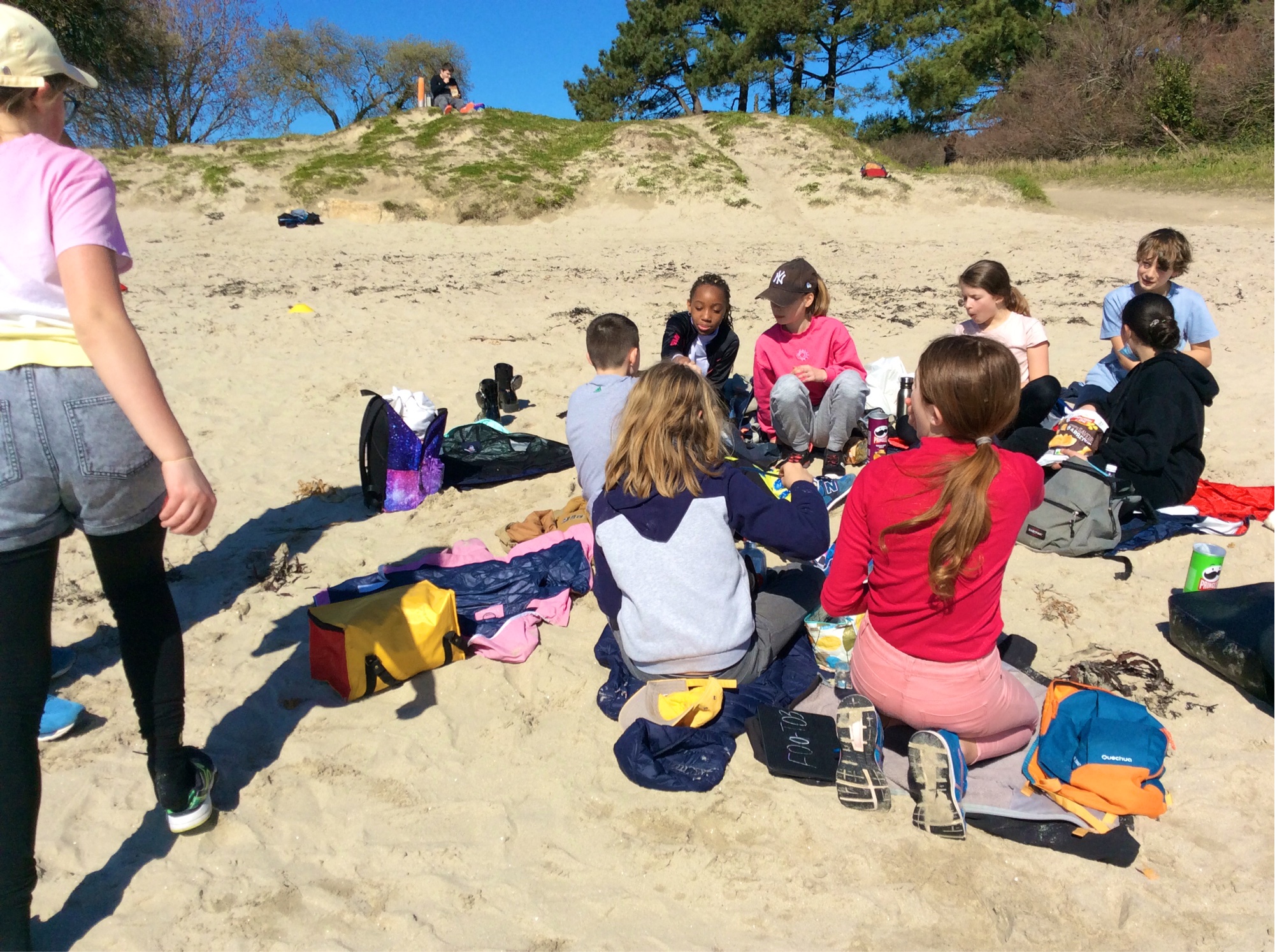 Les élèves de 6B sous un beau soleil breton , se sont rendus à la plage de Kerguelen afin de prélever des déchets en particuliers mésoplastiques (5 mm <plastique <25 mm) et microplastiques (<5 mm). Ces prélèvements seront envoyés très rapidement aux chercheurs de l’organisme Tara qui étudie la pollution par les plastiques des mers et des fleuves.